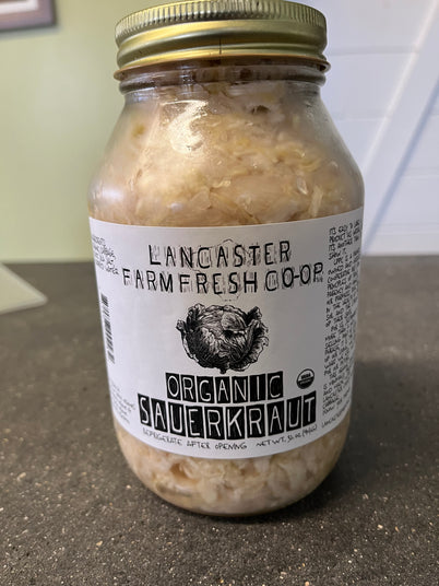 Our Amish Organic Sauerkraut only contains cabbage, salt and filtered water. No additives or ingredients you can't pronounce. Fermented foods are in every culture and for thousands of years have been an effective way to preserve the harvest and make food more digestible while detoxifying and enhancing nutrients. The effect of fermentation transforms foods to make flavors more complex, while adding naturally occurring probiotics to your diet